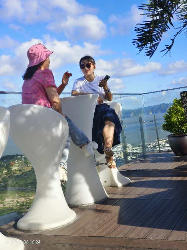 晚上入住的下龍灣五星級(jí)酒店十分豪華,房間布置豪華漂亮,打開(kāi)窗簾面向大海,更有特色的是樓頂有游泳池、咖啡廳等,可以上去游泳、邊喝咖啡邊靠在椅子上觀看整個(gè)下龍灣的夜景,這也是拍照的絕佳好去處,公司男同事忙著游泳、女同事則忙著合影留念,忙的不亦樂(lè)乎。